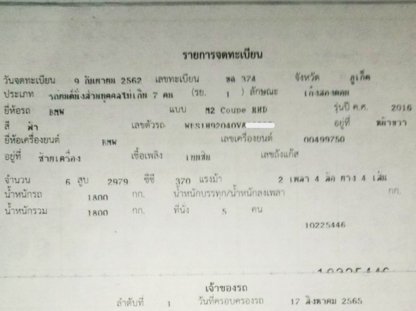 | สัญญาเพิ่มเติม ยี่ห้อ : | BMW | รุ่นย่อย : | M2 |