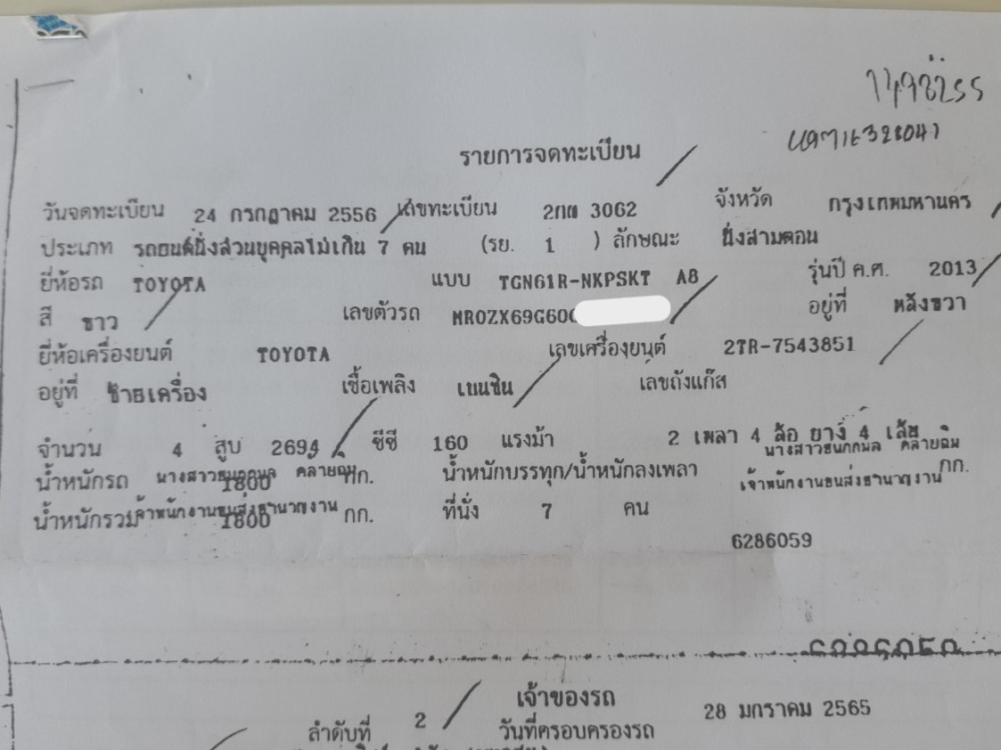 | Registration No. | 2กณ3062 | Chassis No. | MR0ZX69G600111840 |