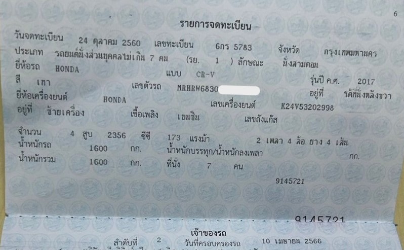 | Registration No. | 6กร5783 | Chassis No. | MRHBW6830JP101866 |