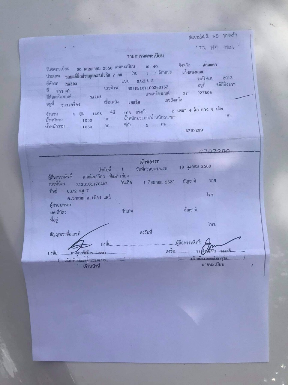 | Registration No. | กบ 40 | Chassis No. | MM8DE10Y100260187 |
