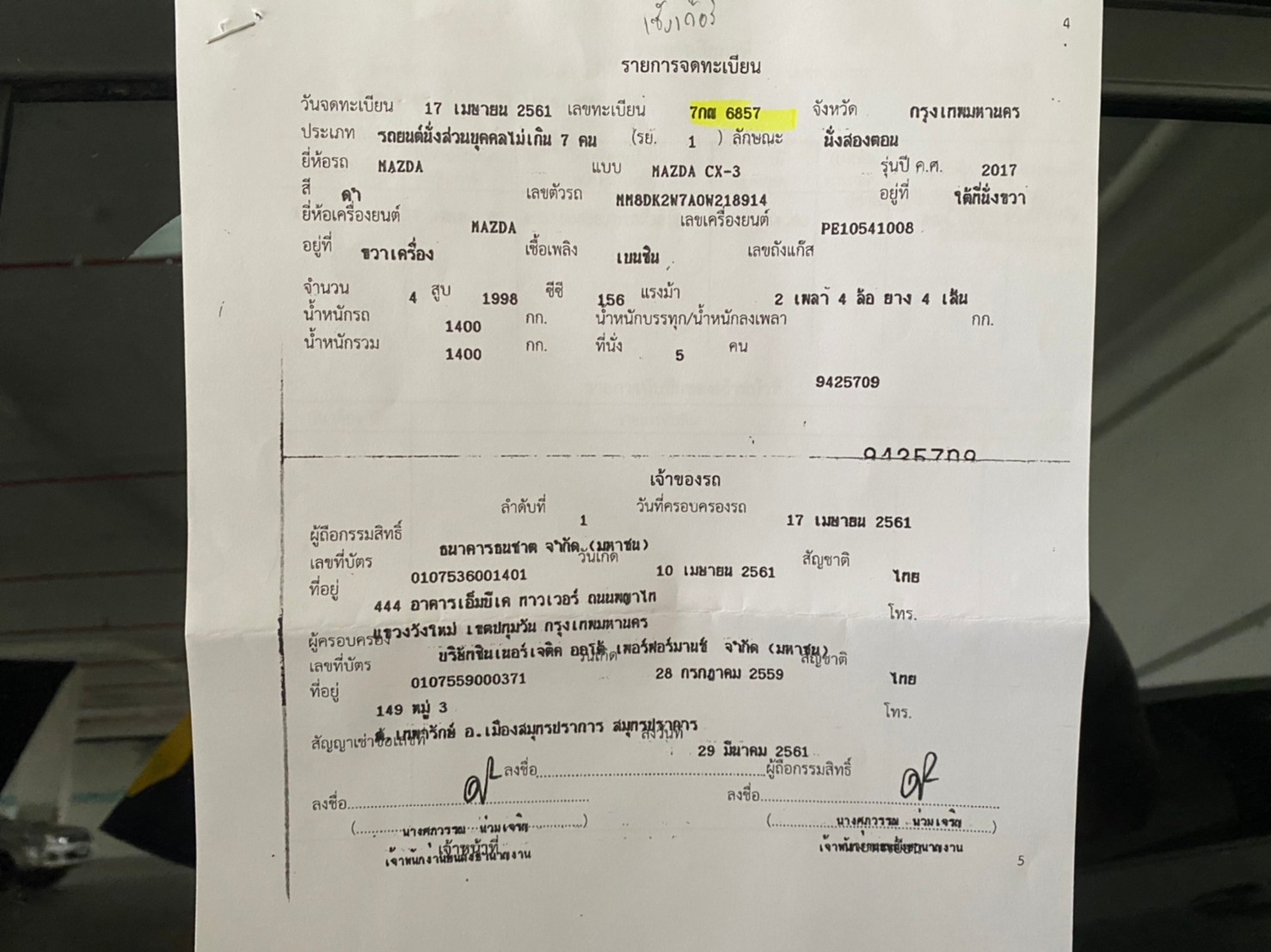 | Registration No. | 7กณ6857 | Chassis No. | MM8DK2W7A0W218914 |